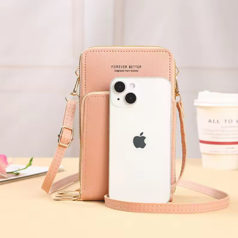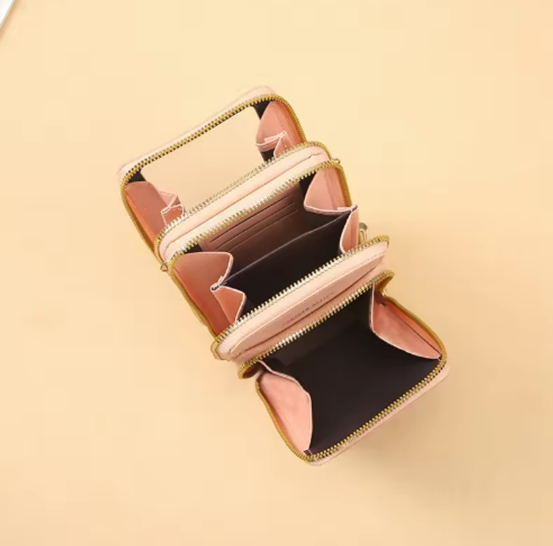 Hot sale three-zipper large capacity cross-body bag touch screen mobile phone bag.
