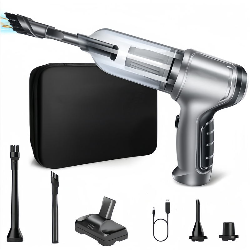 2. Accessories: Equipped with multiple suction heads. The narrow - gap suction head reaches deep into air vents and seat gaps; the brush suction head brushes and suctions simultaneously to clean floating dust on fabric surfaces. It also comes with a charging cable and a storage box, convenient for charging and doesn’t take up space for storage.